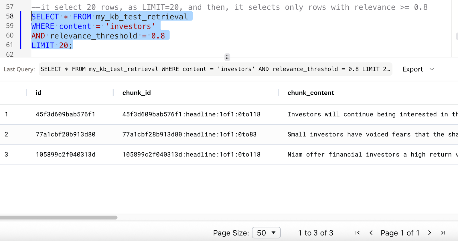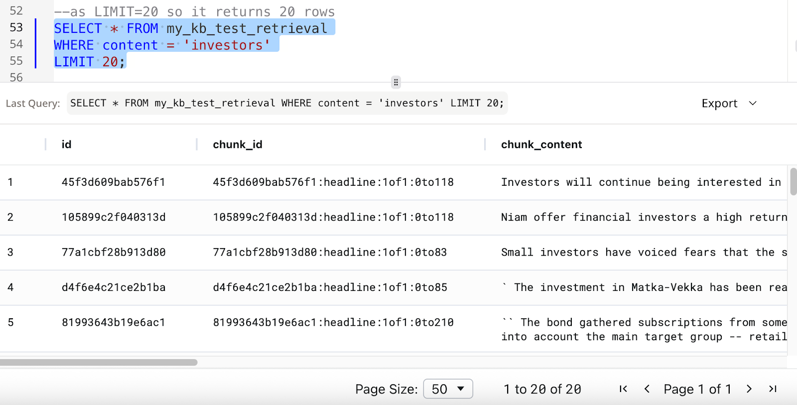 Here is the data that will be inserted into the knowledge base.Financial Data